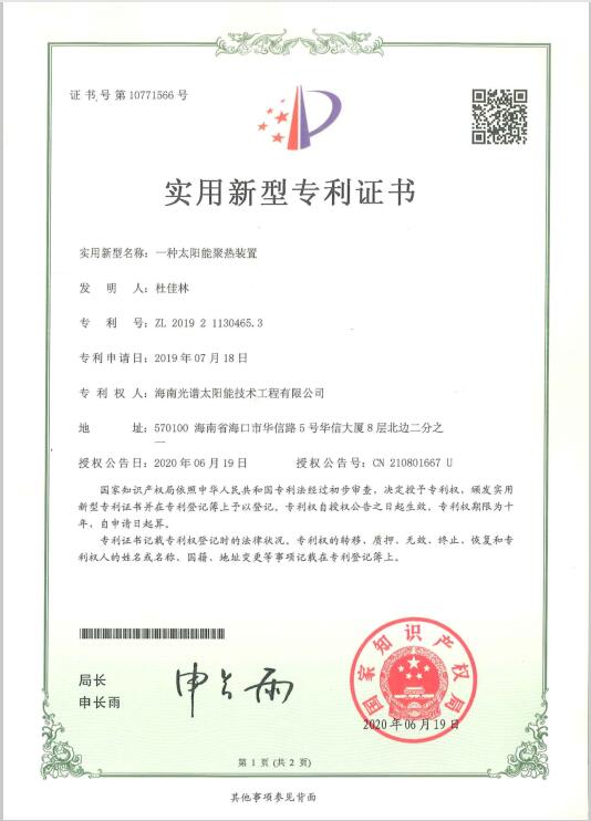 近日,我司申報的“一種太陽能熱泵蒸汽發(fā)生裝置”發(fā)明專利通過審查,獲得國家知識產(chǎn)權(quán)局授予的發(fā)明專利證書,授權(quán)專利號為“ZL201911126309.4”。 此次獲得國家頒發(fā)的專利證書,是對海南光譜公司創(chuàng)新實力的認(rèn)可,代表著我司知識產(chǎn)權(quán)取得了突破性進(jìn)展,為公司的持續(xù)性發(fā)展提供強有力的科技創(chuàng)...